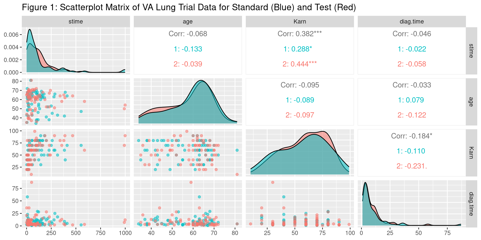 treatment, either standard or test (chemotherapy); 1 (standard), 2 (test)